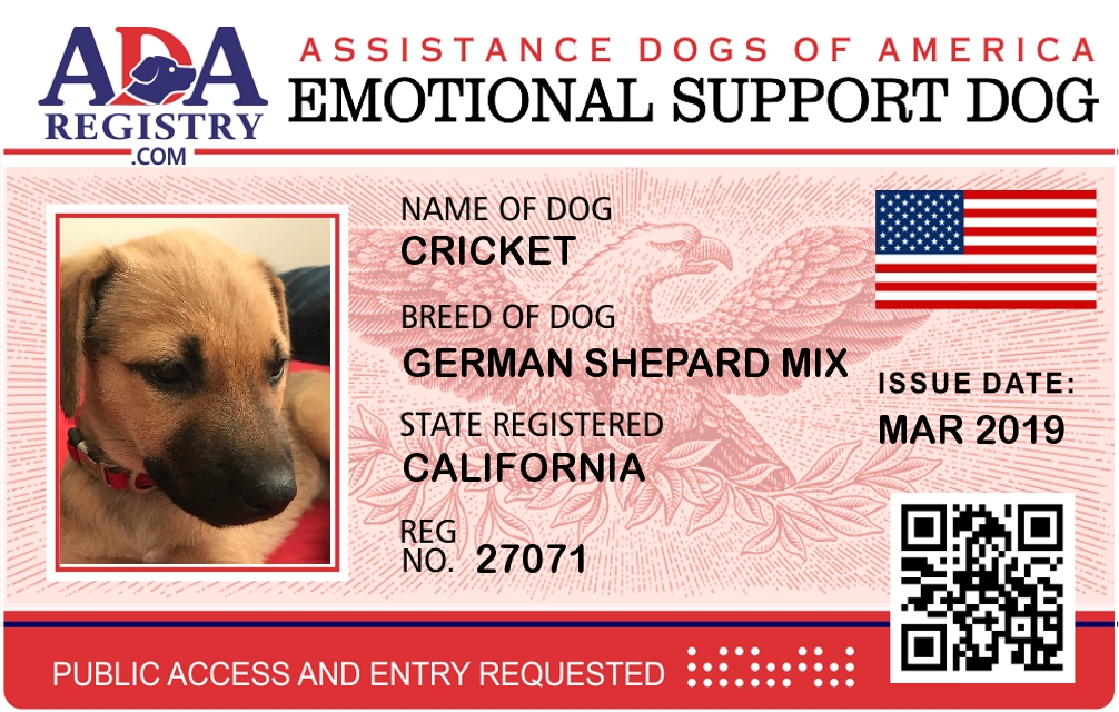 Emotional Support Dog Registration for Cricket