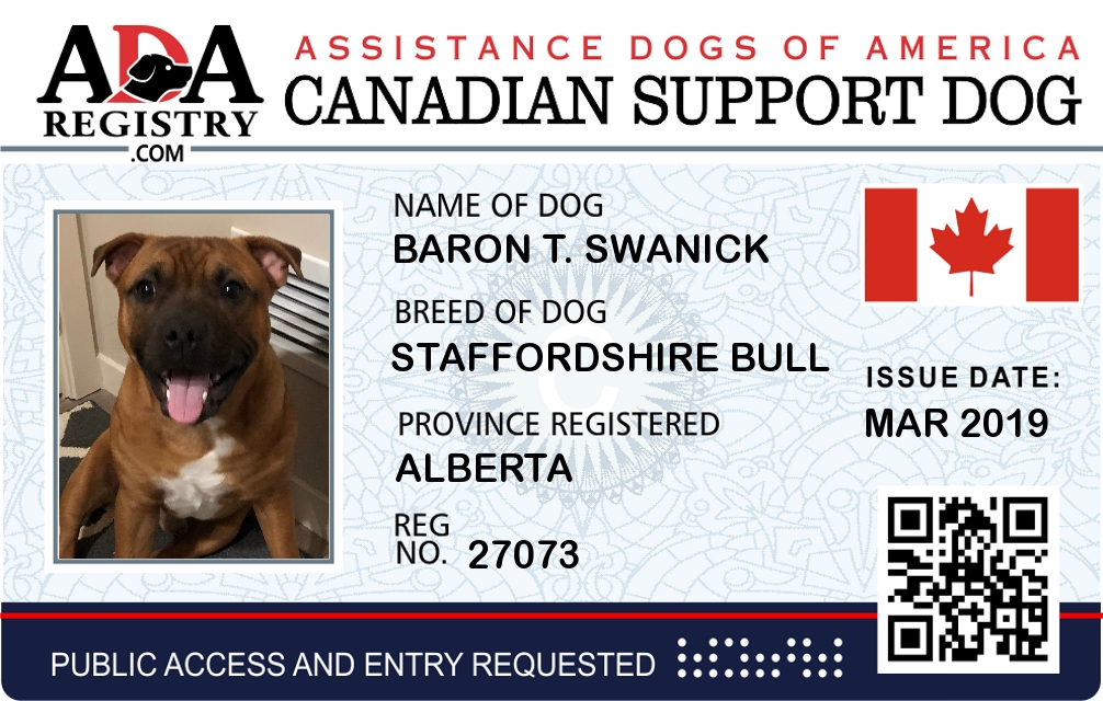 Emotional Support Dog Registration for BARON T. SWANICK