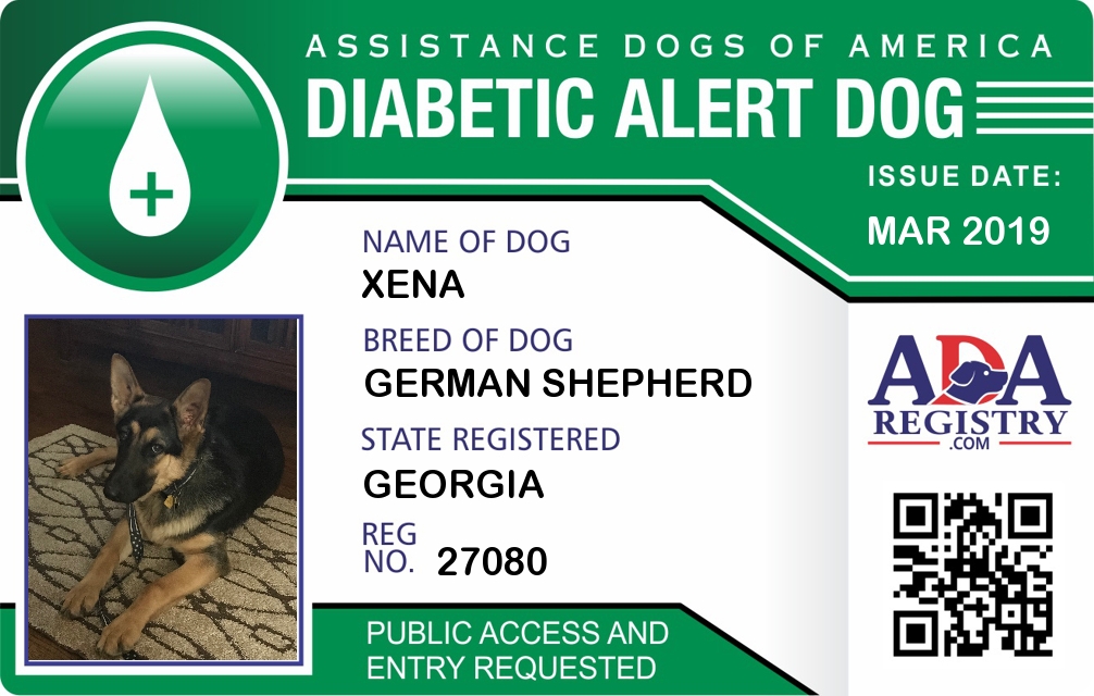 Medical Alert Dog Registration for Xena