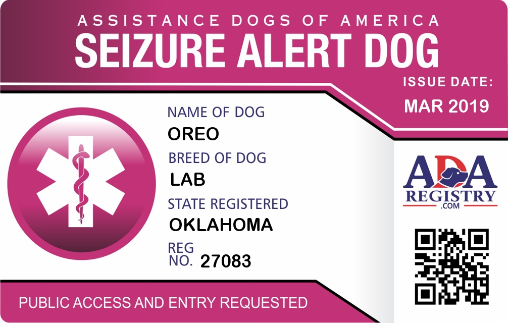Seizure Assistance Dog Registration for Oreo