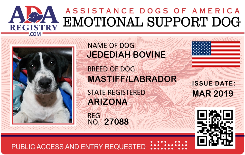 Emotional Support Dog Registration for Jedediah Bovine