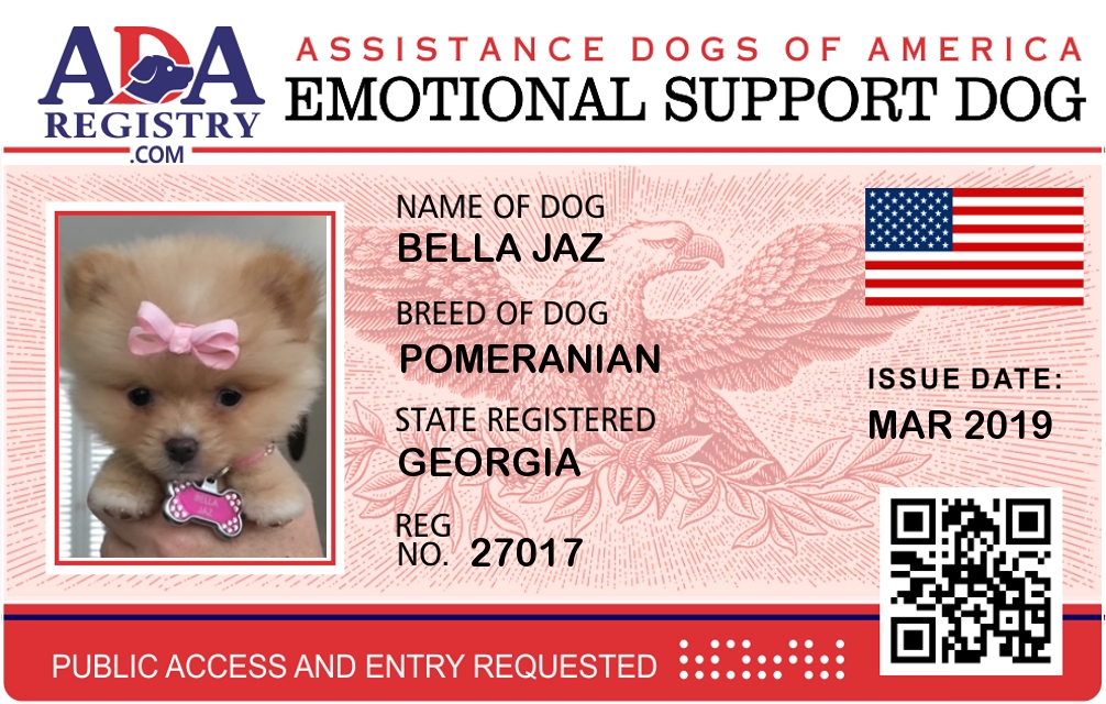 Emotional Support Dog Registration for Bella Jaz