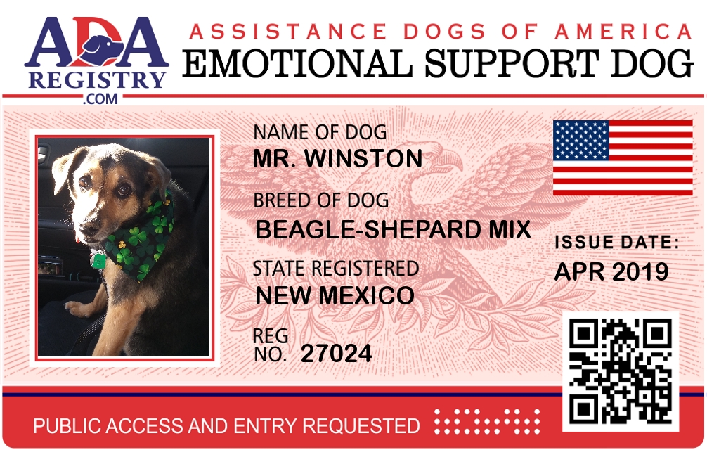 Emotional Support Dog Registration for Mr. Winston