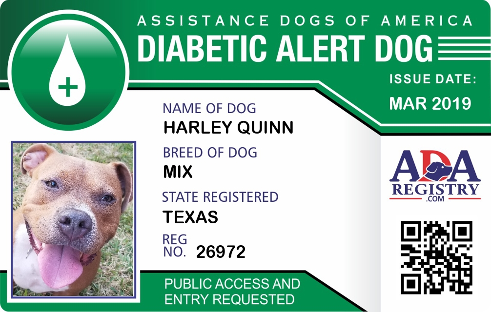 Diabetic Alert Dog Registration for Harley Quinn