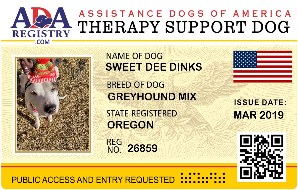 Service Dog Registration for Sweet Dee Dinks