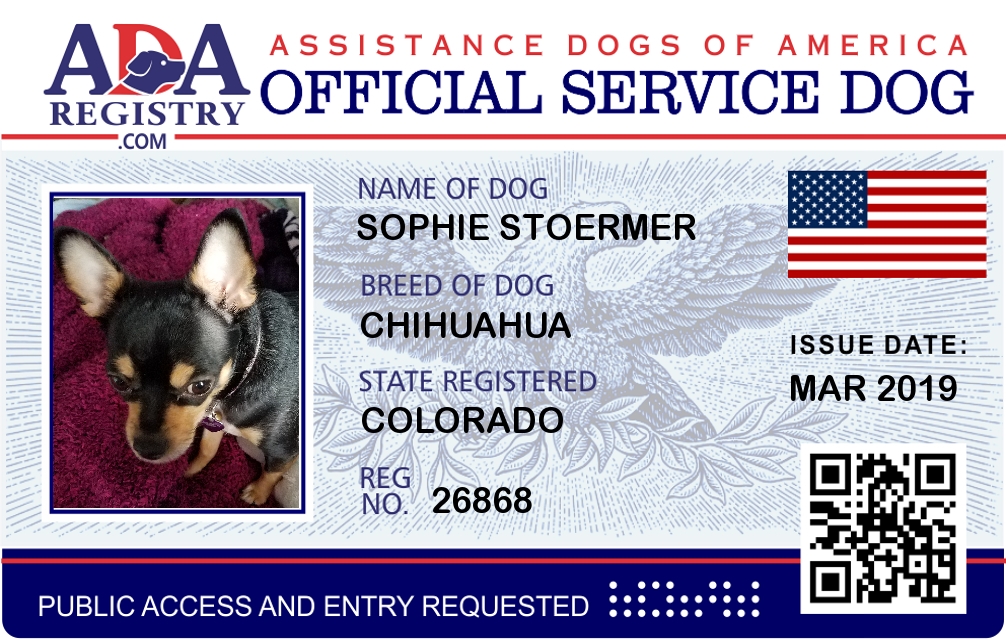 Psychiatric Service Dog Registration for Sophie Stoermer