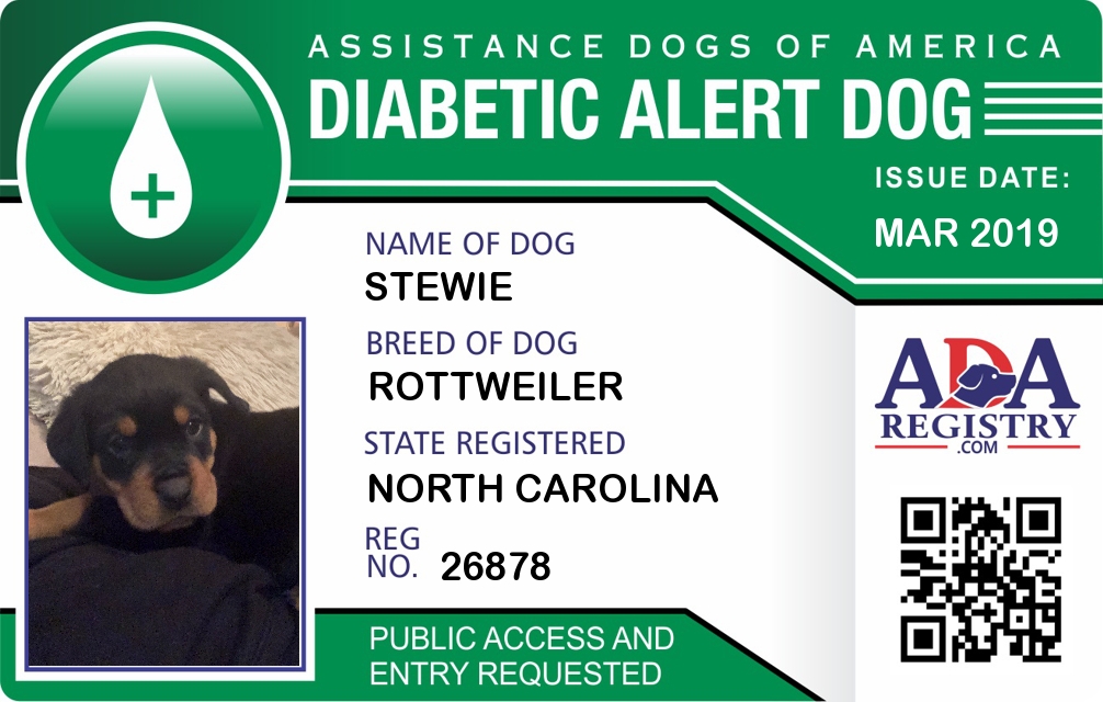 Diabetic Alert Dog Registration for Rocco