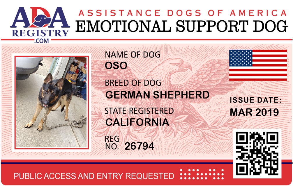 Emotional Support Dog Registration for Oso