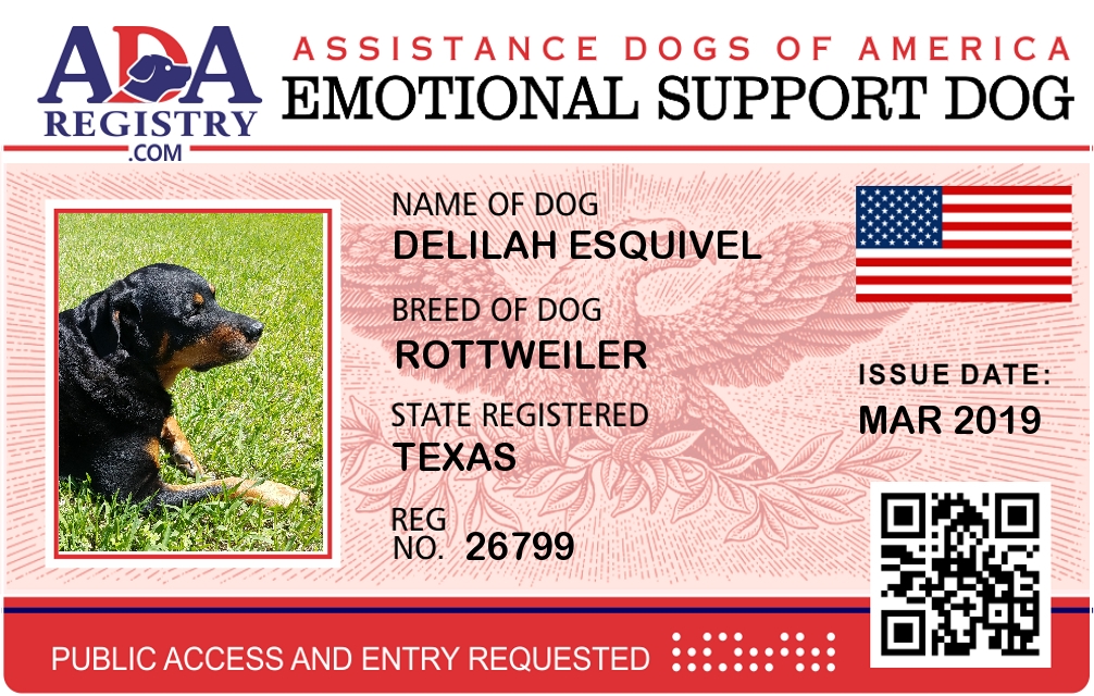 Emotional Support Dog Registration for Delilah Esquivel