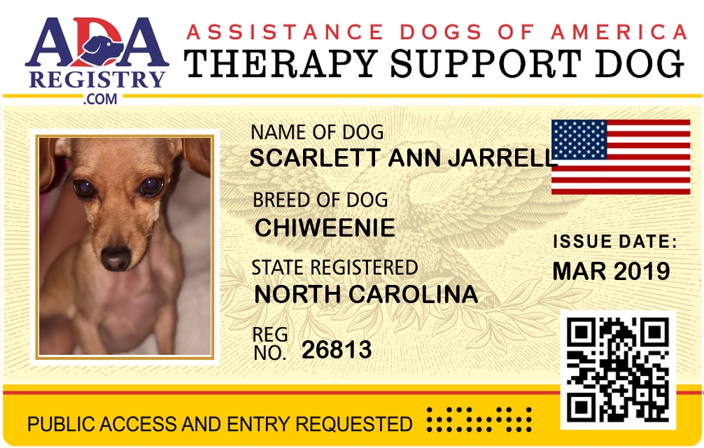 Emotional Support Dog Registration for Scarlett Ann Jarrell