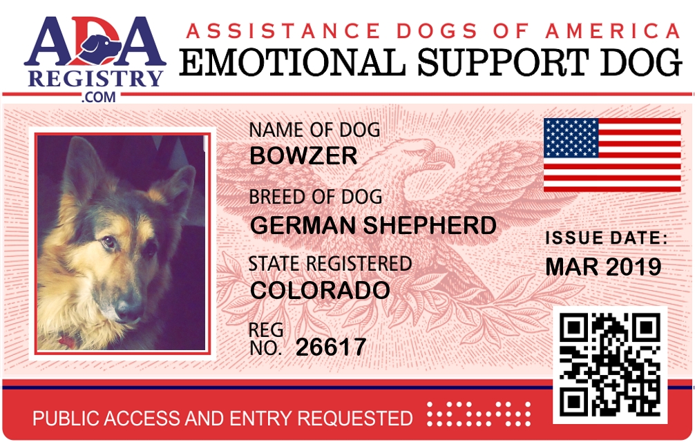Emotional Support Dog Registration for Bowzer