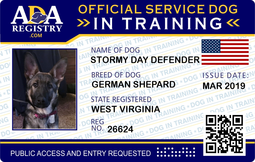 Service Dog In Training Registration for Stormy Day Defender