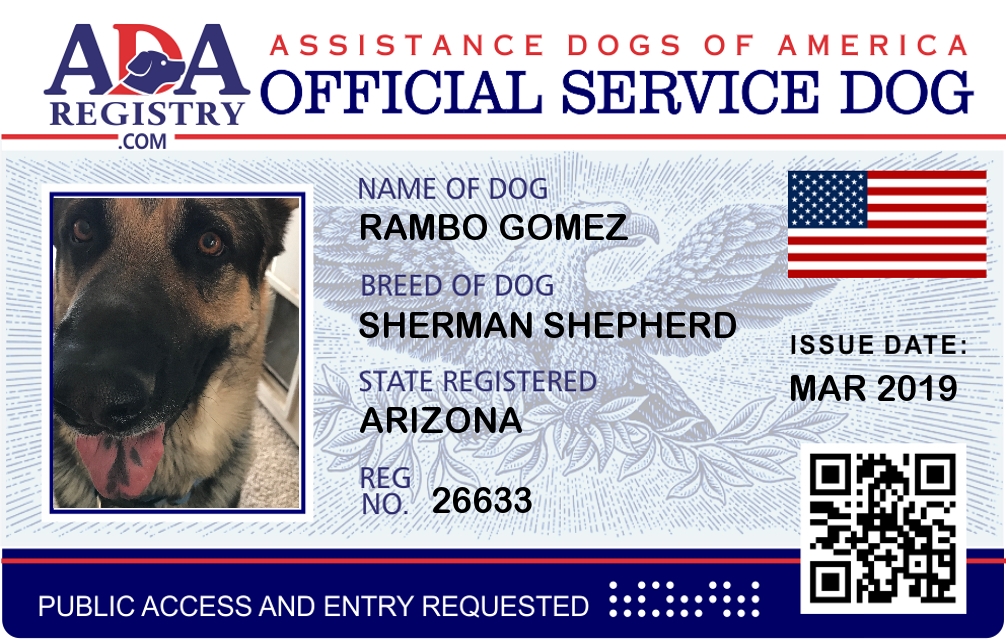 Service Dog Registration for Rambo Gomez