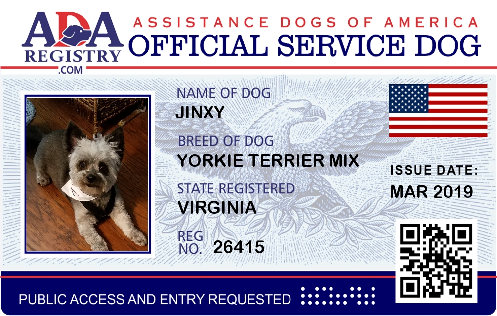 Emotional Support Dog Registration for Jinxy
