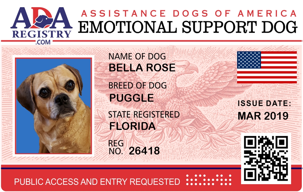Emotional Support Dog Registration for Bella Rose