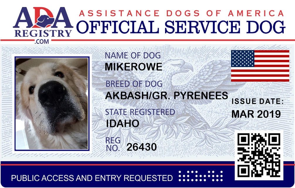 Service Dog In Training Registration for MikeRowe