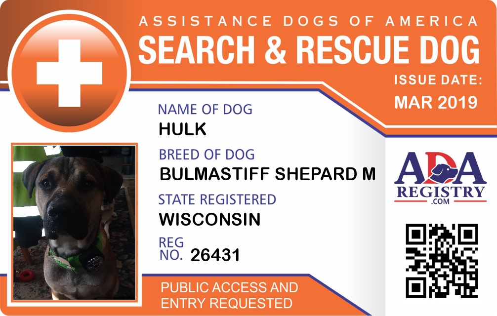 Search And Rescue Dog Registration for Hulk
