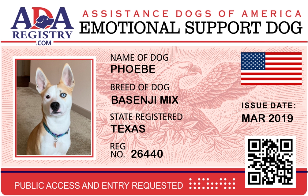 Emotional Support Dog Registration for Phoebe