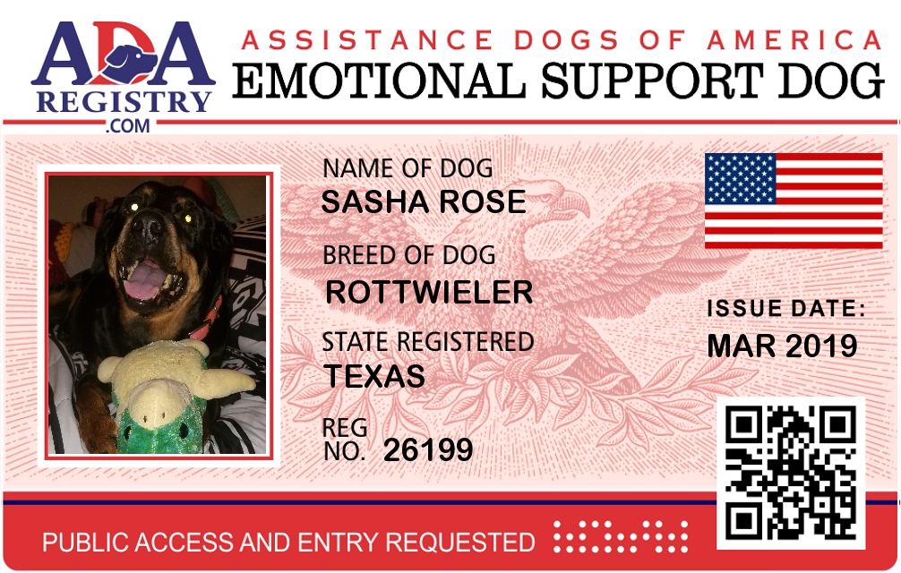 Emotional Support Dog Registration for SASHA ROSE