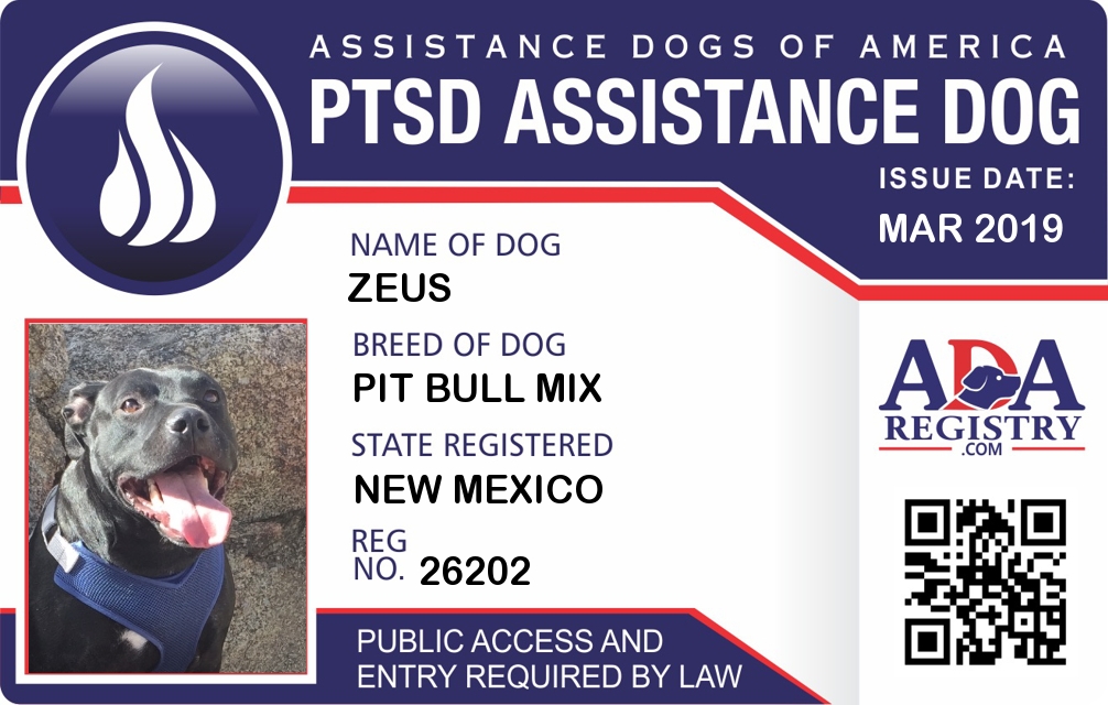 PTSD Assistance Dog Registration for Zeus