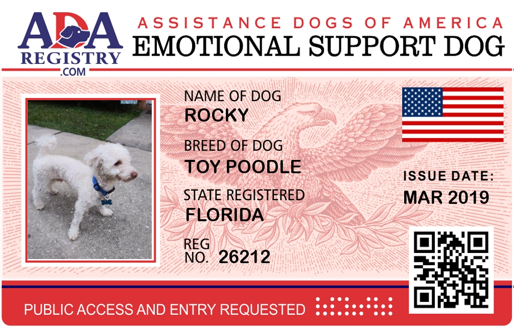 Emotional Support Dog Registration for Rocky REVOKED FOR FRAUD