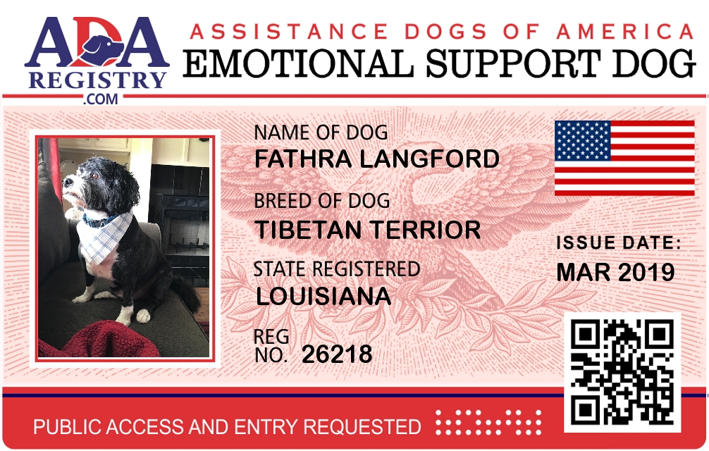 Emotional Support Dog Registration for Fathra Langford