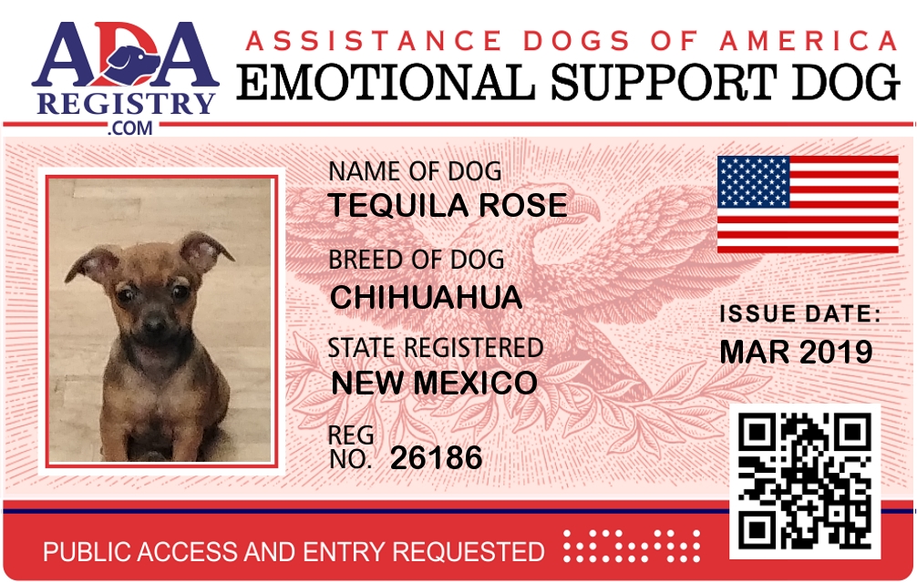 Emotional Support Dog Registration for Tequila rose