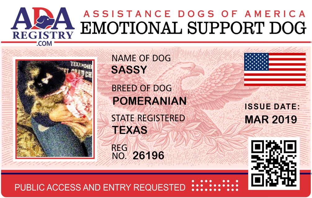 Emotional Support Dog Registration for Sassy