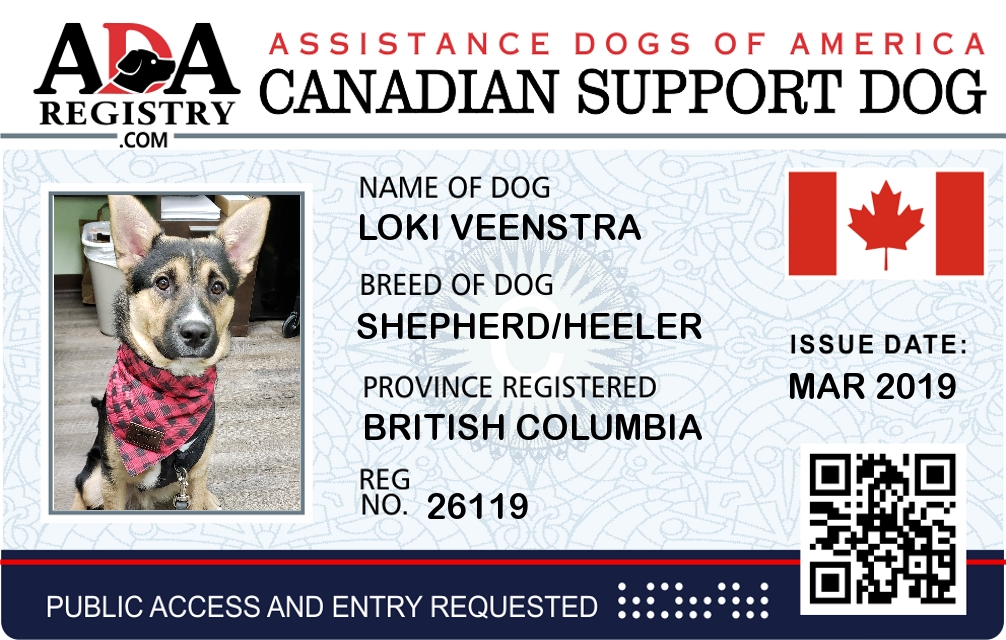 Emotional Support Dog Registration for Loki Veenstra