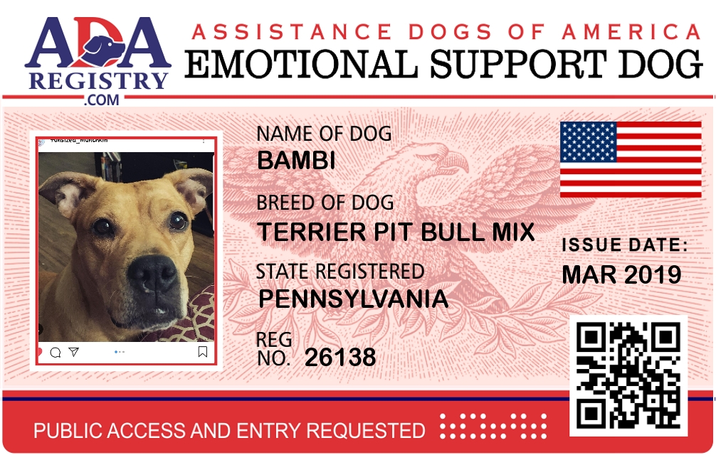 Emotional Support Dog Registration for Bambi