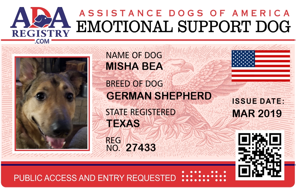 Emotional Support Dog Registration for Misha Bea