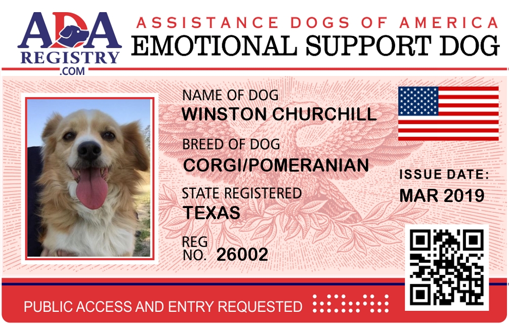 Emotional Support Dog Registration for Winston Churchill