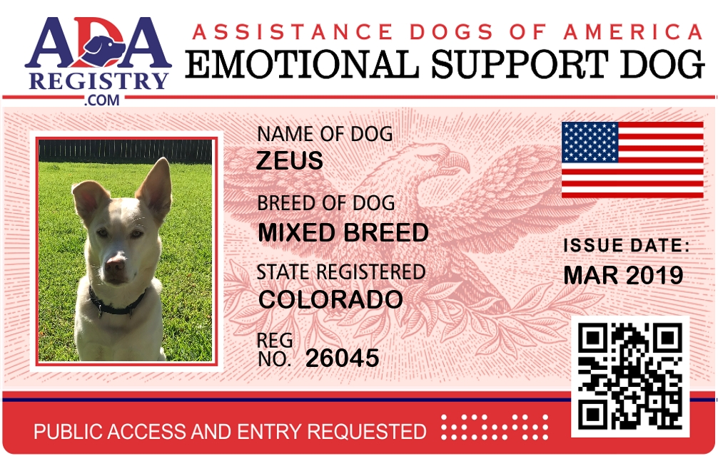 Emotional Support Dog Registration for Zeus
