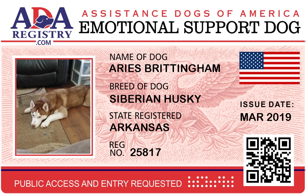 Emotional Support Dog Registration for Aries Brittingham
