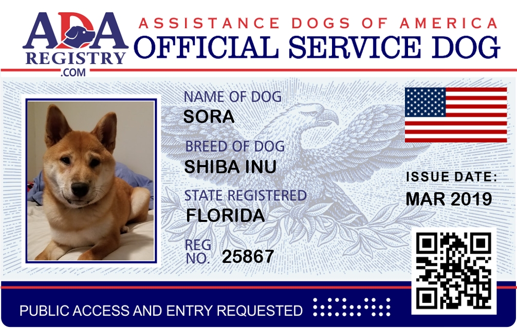 Service Dog Registration for Sora