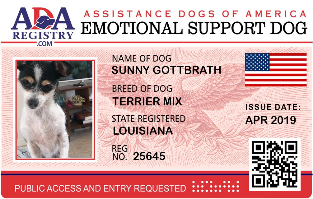 Emotional Support Dog Registration for Sunny Gottbrath