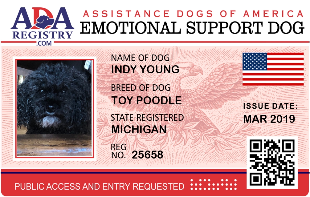 Emotional Support Dog Registration for Indy Young