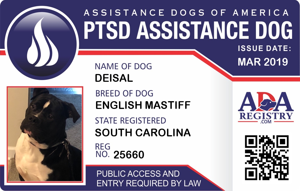 PTSD Assistance Dog Registration for Deisal