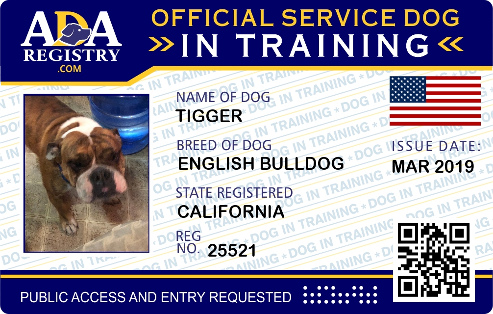 Service Dog In Training Registration for Tigger