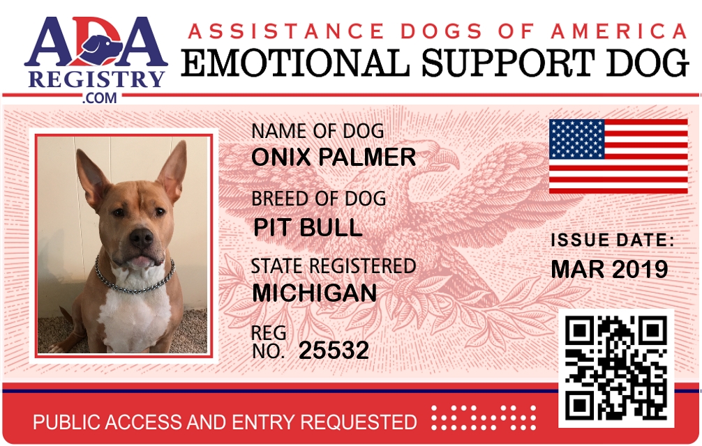 Emotional Support Dog Registration for Onix Palmer REVOKED FOR FRAUD