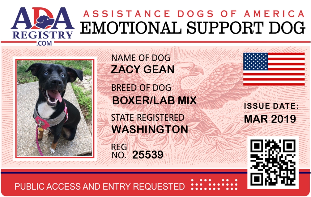 Emotional Support Dog Registration for Zacy Gean