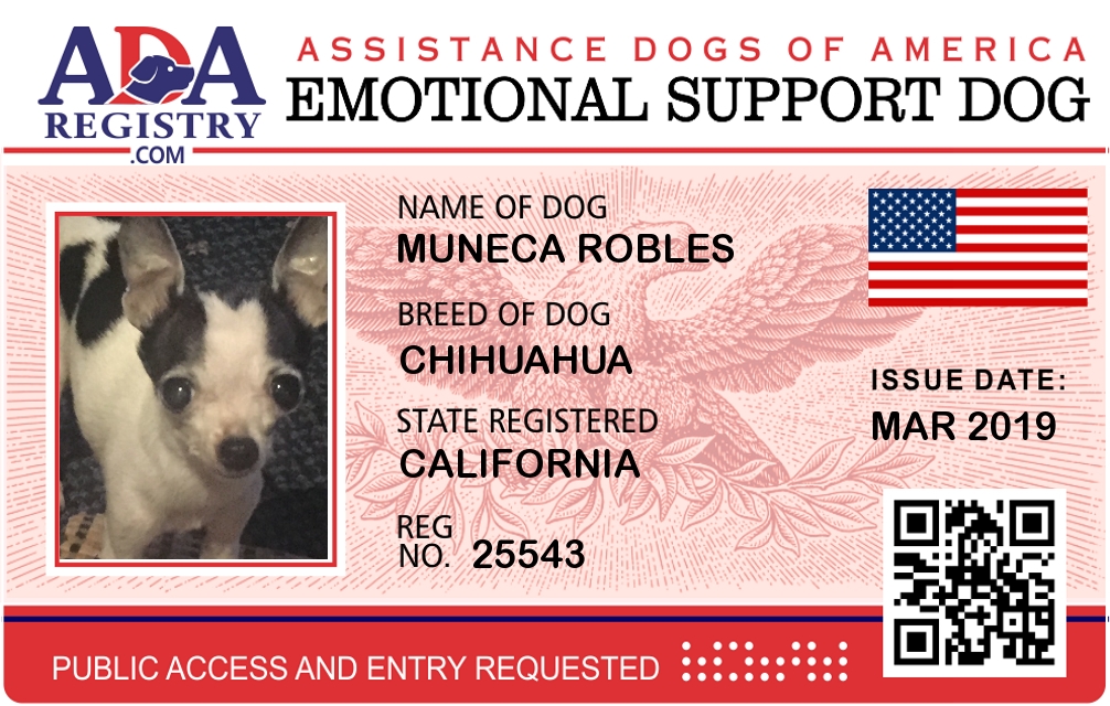 Emotional Support Dog Registration for Muneca Robles