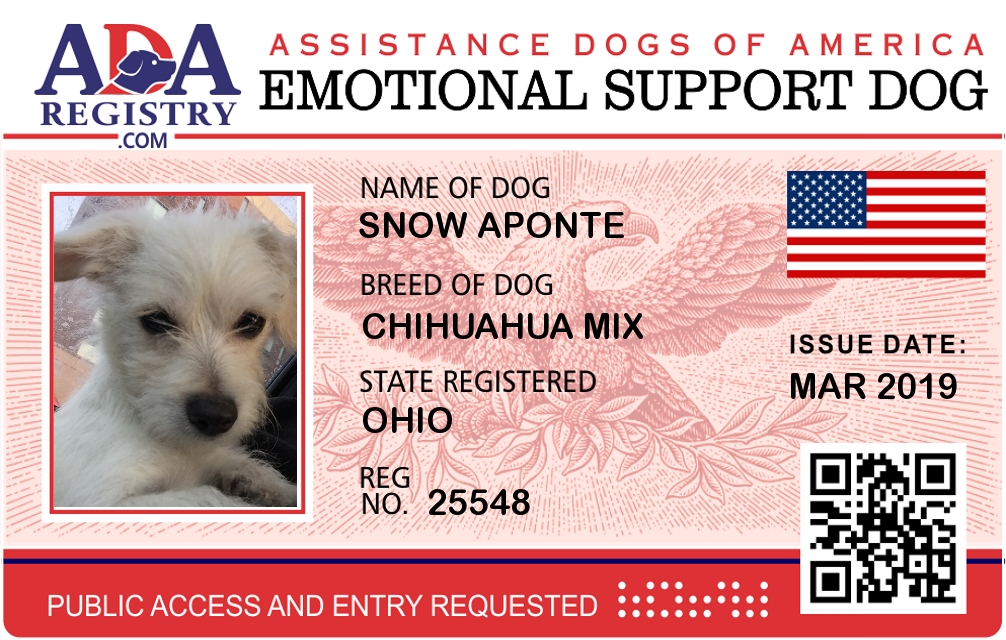 Emotional Support Dog Registration for Snow Aponte