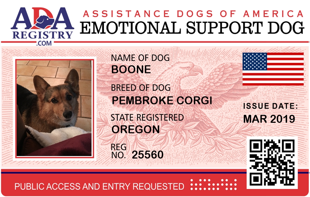 Emotional Support Dog Registration for Ms. Moogie Moo