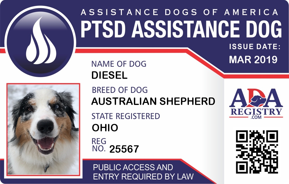 PTSD Assistance Dog Registration for Diesel