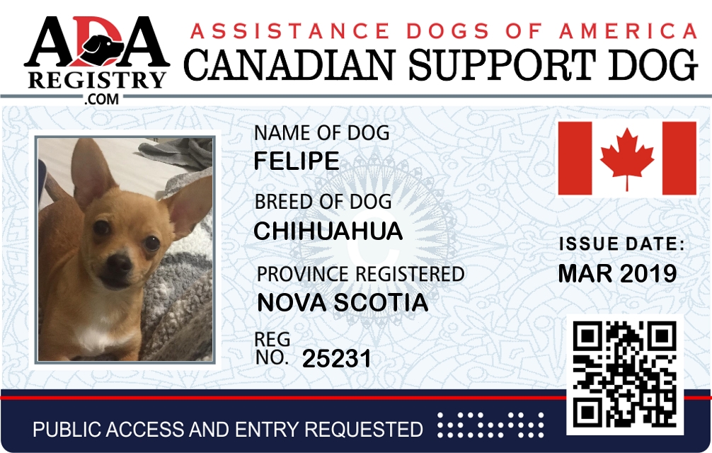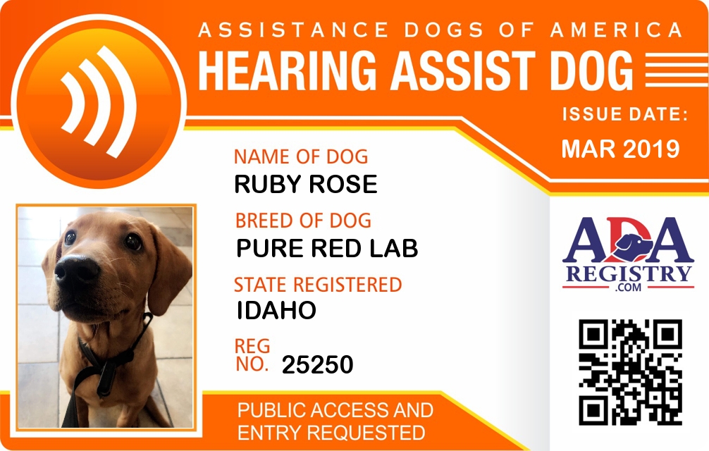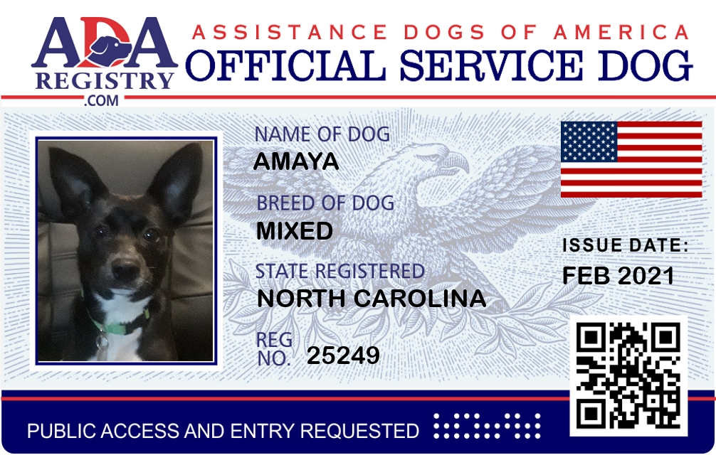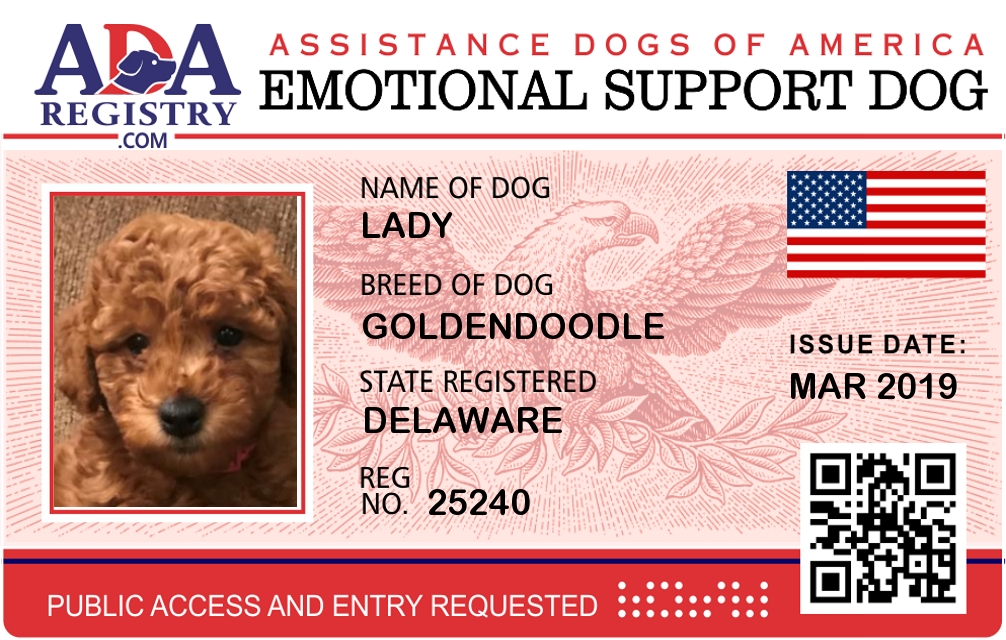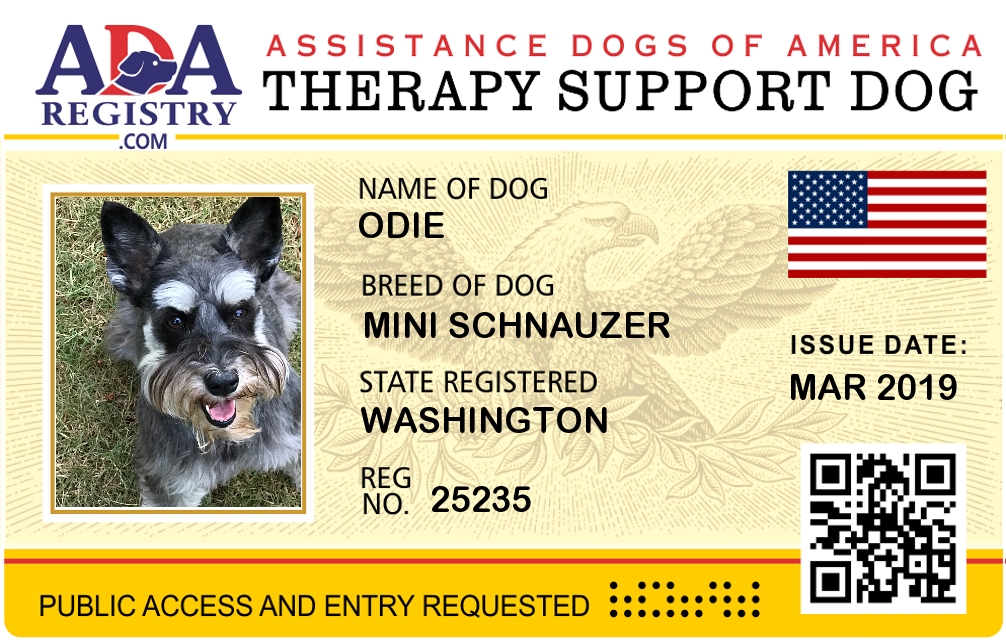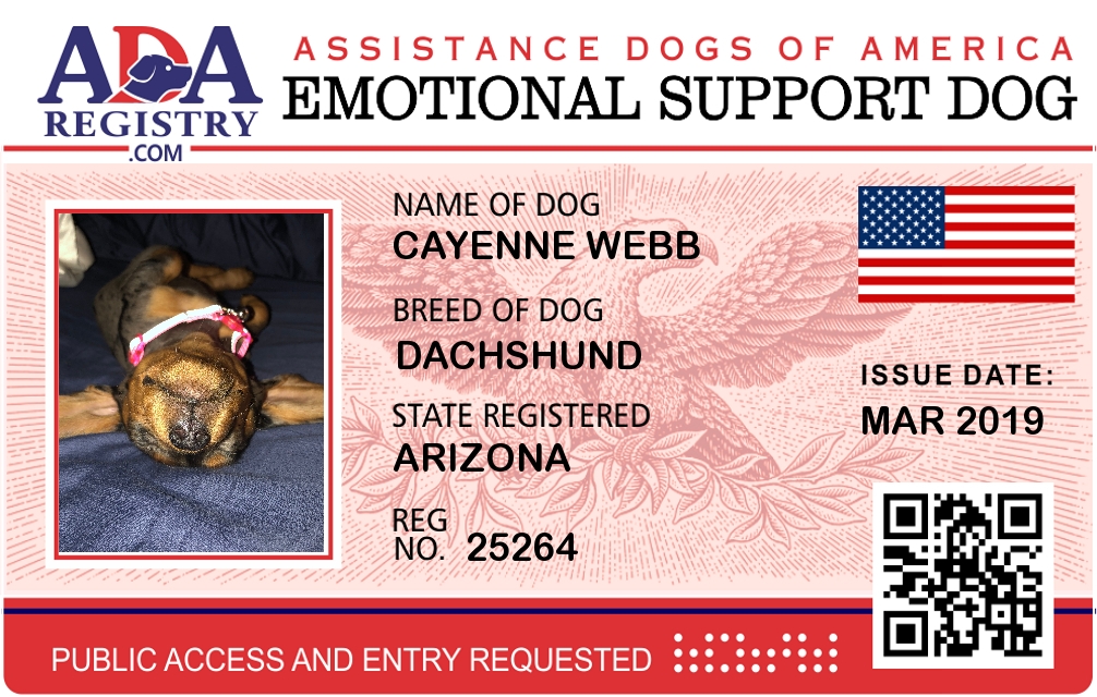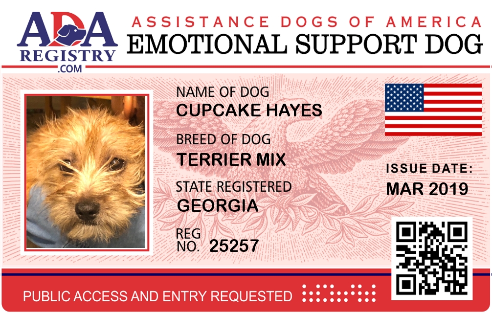 Psychiatric Service Dog Registration for Cupcake Hayes