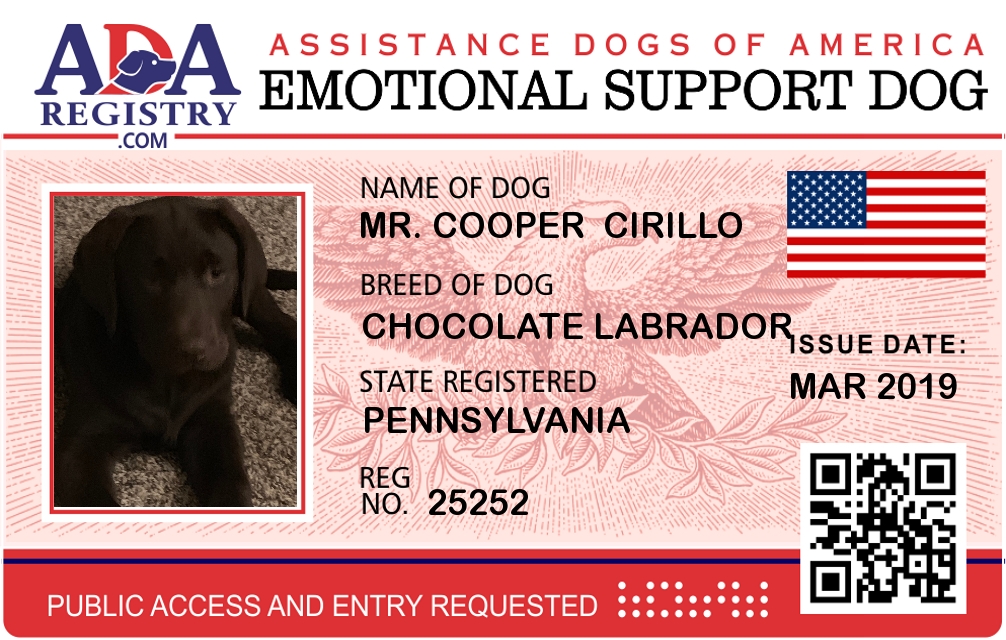 Emotional Support Dog Registration for Mr. Cooper Cirillo
