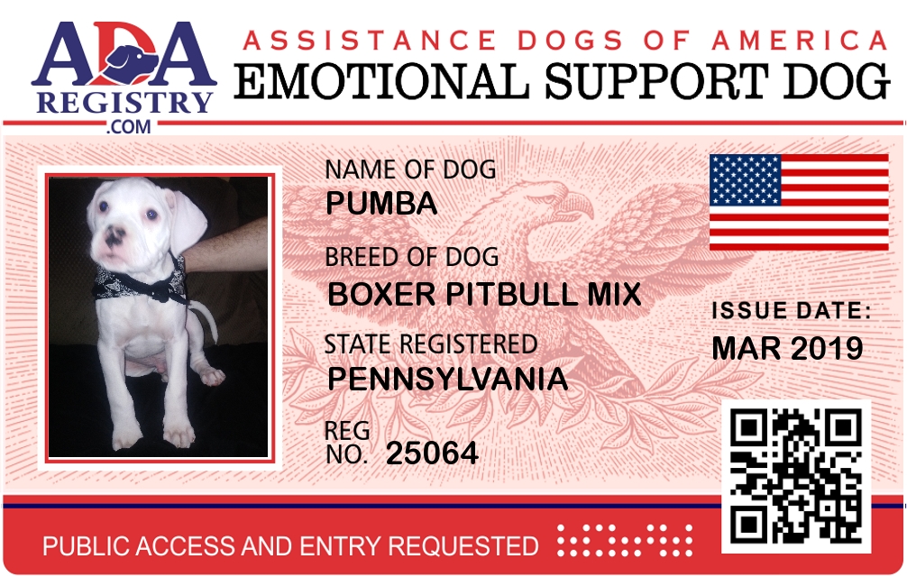Emotional Support Dog Registration for Pumba