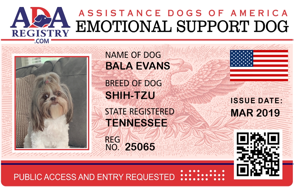 Emotional Support Dog Registration for Bala Evans