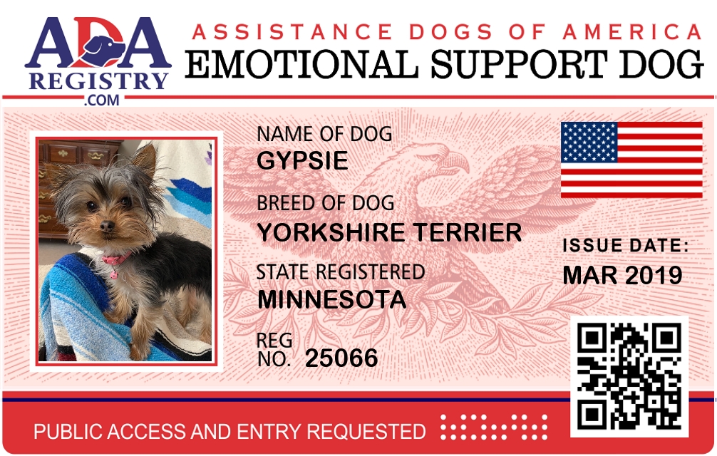 Emotional Support Dog Registration for Gypsie